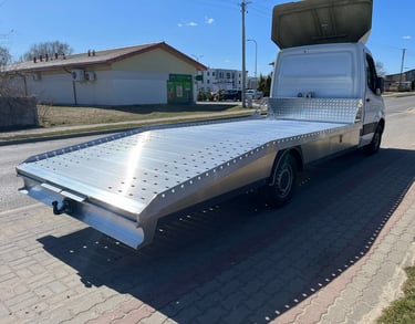 Konstrukcja aluminiowa – projektowana indywidualnie pod zastosowanie, DMC oraz charakter pracy (pomoc drogowa, transport aut i maszyn)