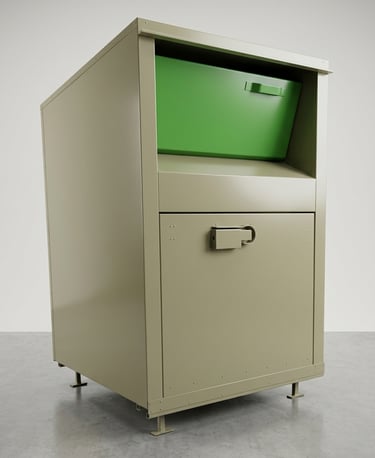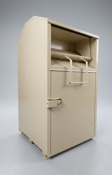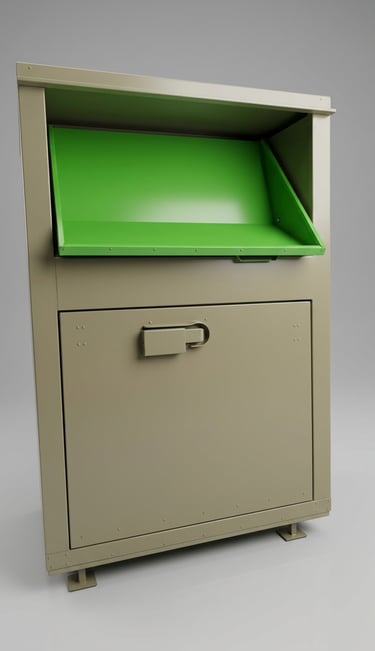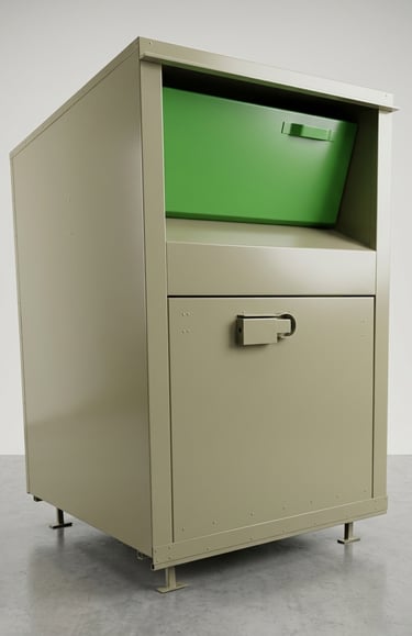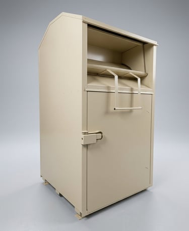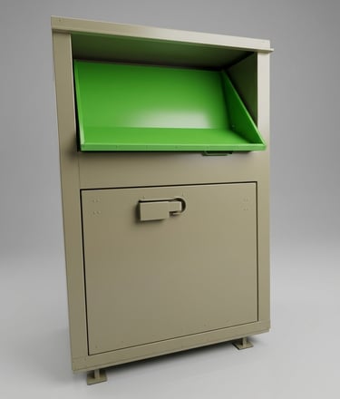 Nowoczesny i trwały pojemnik do zbiórki odzieży używanej, tekstyliów oraz obuwia. Zaprojektowany z myślą o bezpieczeństwie użytkowników, odporności na warunki atmosferyczne oraz wygodzie eksploatacji.